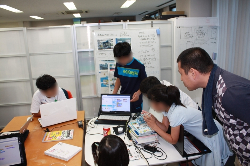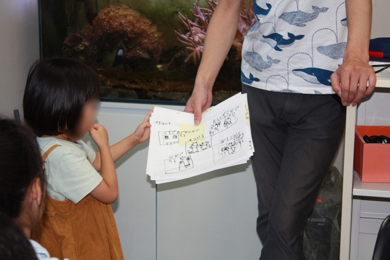 プログラミングはできないので見学していた小さなニンジャが、紙にアイデアを書いて発表してくれました。数枚に渡る大作でした。将来実際に動く画面が見てみたいと思いました(^o^)